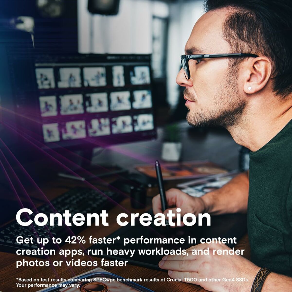 Crucial CT4000T500SSD3. SDD, capacidad: 4 TB, Factor de forma de disco SSD: M.2, Componente para: Portátil