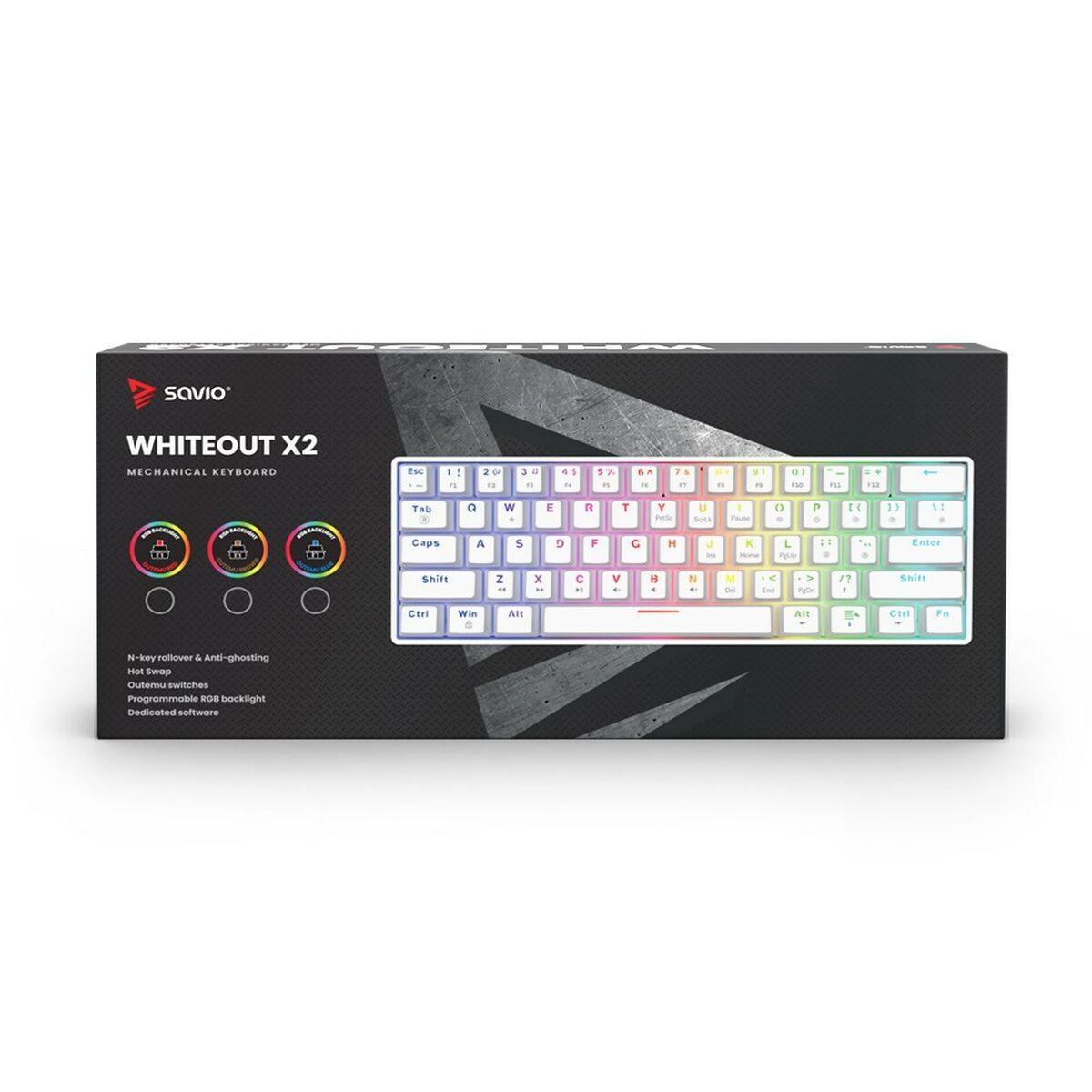 Teclado Savio WHITEOUT X2 BLUE Blanco Qwerty US