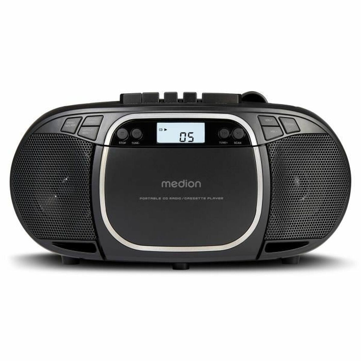 MEDION LIFE E66476. Tipo de radio: Portátil, Tipo de sintonizador: Digital, Bandas de radio soportadas: AM, FM. Potencia estimada RMS: 22 W. Tipo de visualizador: LCD, Color de luz de fondo: Azul. Auriculares: 3,5 mm. Color del producto: Negro, Tipo de antena: Externo
