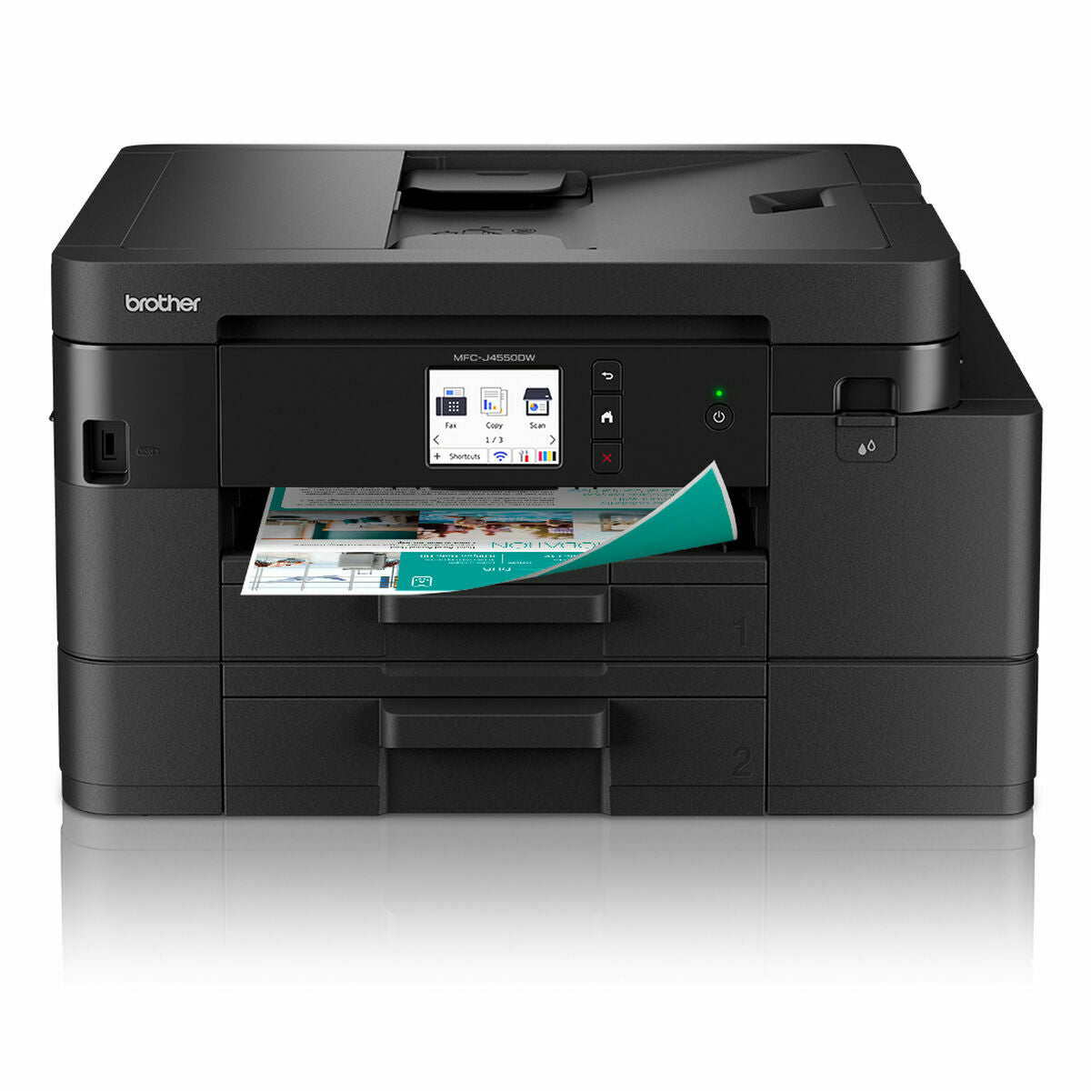 Brother MFC-J4550DW. Tecnología de impresión: Inyección de tinta, Impresión: Impresión a color, Resolución máxima: 1200 x 4800 DPI. Copiando: Copia a color, Resolución máxima de copia: 1200 x 2400 DPI. Escaneando: Escaneo a color, Resolución óptica de escáner: 1200 x 2400 DPI. Enviando por fax: Fax a color. Funciones dúplex: Copiar, Imprimir, Escanear. Tamaño máximo de papel ISO A-series: A4. Wifi. Color del producto: Negro