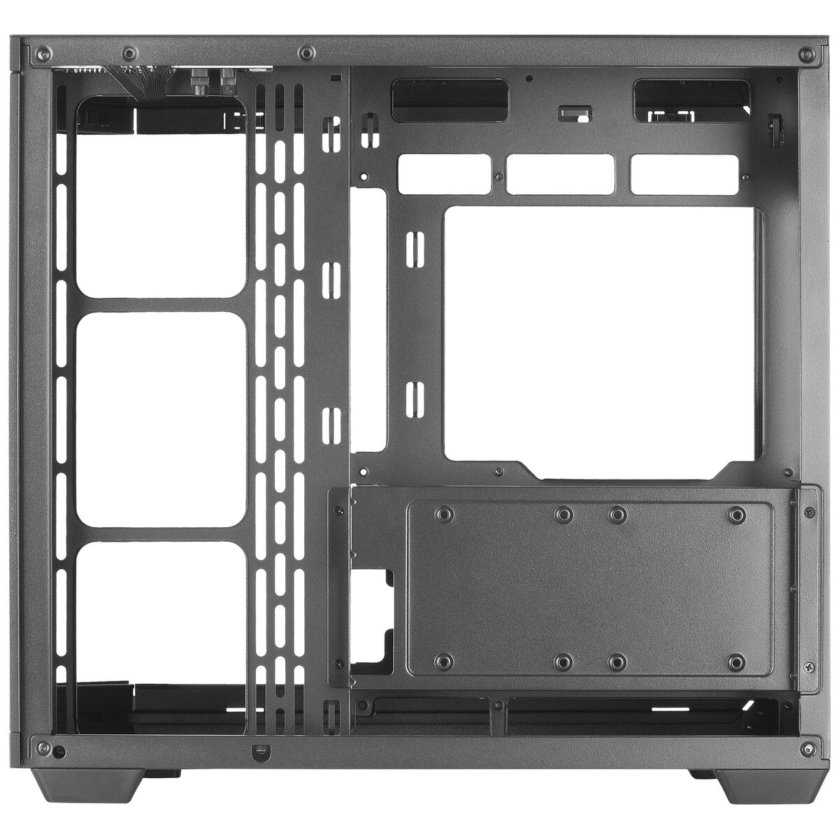 La separación de PSU/almacenamiento del resto del hardware optimiza el orden y el flujo de aire, simplifica el montaje y deja el interior impecable.
