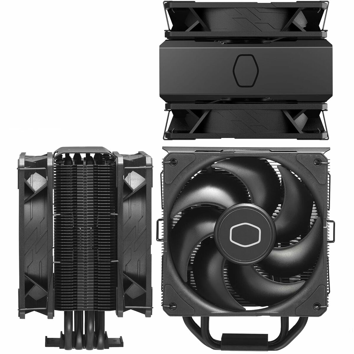 Cooler Master Hyper 212 Black X Duo. Tipo: Refrigerador de aire, Diámetro de ventilador: 12 cm, Velocidad de rotación (mín.): 690 RPM, Velocidad de rotación (máx.): 2500 RPM, Presión máxima de aire: 3,61 mmH2O. Ancho: 103 mm, Profundidad: 125 mm, Altura: 152 mm. Color del producto: Negro