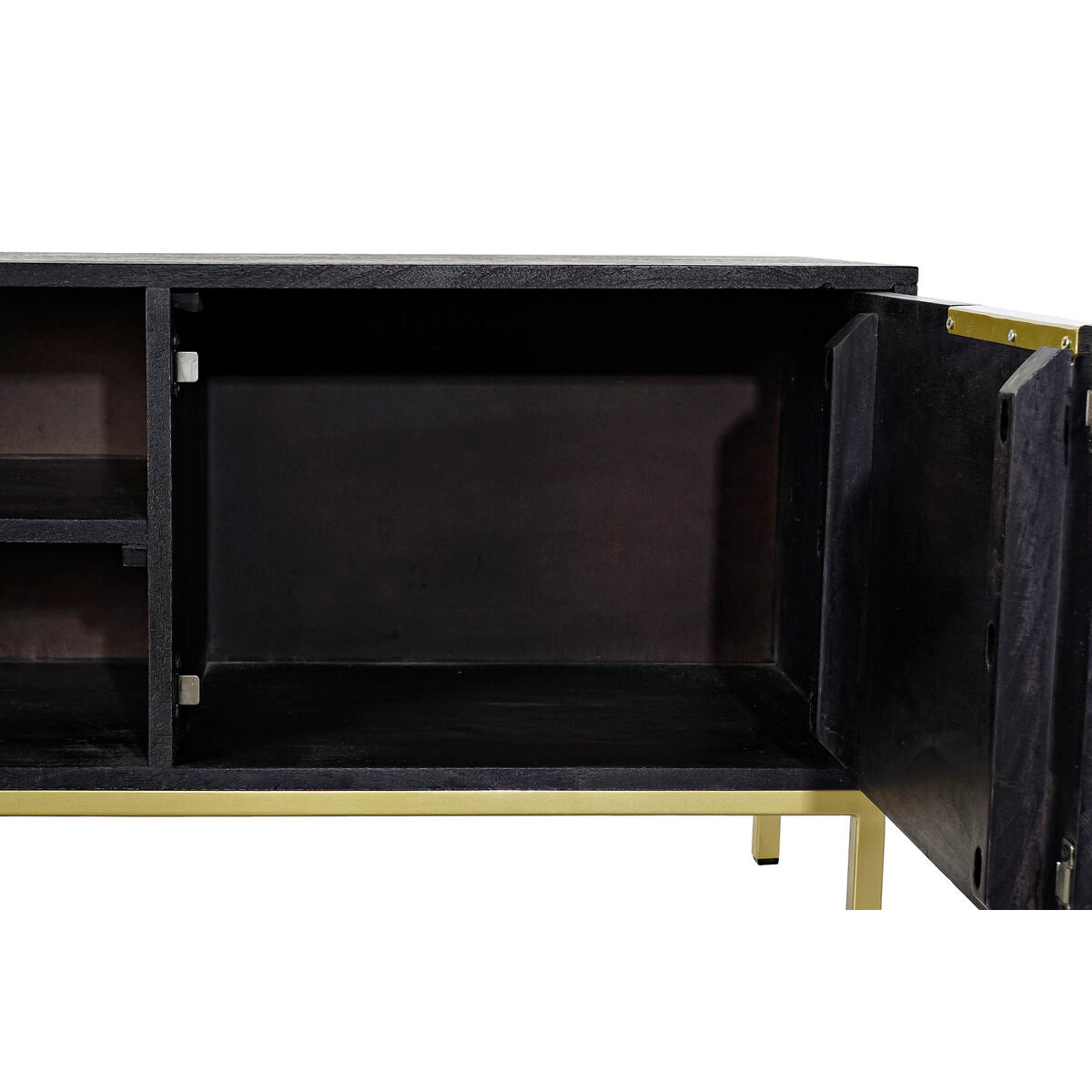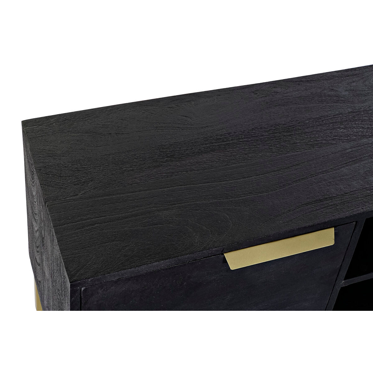 Mueble de TV DKD Home Decor Negro Metal Dorado Madera de mango (147 x 40 x 51 cm)