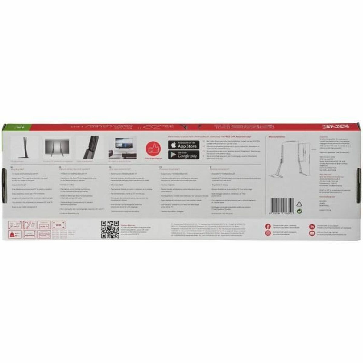 El soporte para TV One For All WM2470 es un accesorio diseñado para colocar televisores de forma estable y segura en superficies planas, ofreciendo una solución práctica para televisores con tamaños entre 32 y 55 pulgadas. Su estructura está fabricada en un elegante color negro que se integra fácilmente en cualquier ambiente, aportando discreción y profesionalidad. Este soporte de mesa ofrece una instalación sencilla y resistente para una sola unidad, permitiendo disponer el televisor a una altura adecuada para una visualización cómoda sin necesidad de taladrar paredes, ideal para espacios donde se prefiera mantener la flexibilidad y movilidad del equipo. La estabilidad del soporte garantiza que el televisor se mantenga firme, minimizando vibraciones o movimientos inesperados, lo que contribuye a la protección del dispositivo y mejora la experiencia visual. Además, el diseño compacto y robusto del soporte One For All WM2470 proporciona una base fiable que aprovecha al máximo el espacio disponible en escritorios, muebles o mesas auxiliares. Su construcción está pensada para adaptarse a una amplia variedad de modelos dentro del rango de tamaño indicado, facilitando la compatibilidad y el uso sencillo sin complicaciones técnicas adicionales. En conjunto, este soporte representa una opción práctica y funcional para quienes necesitan una solución versátil y segura para instalar su televisor en entornos domésticos o profesionales, combinando facilidad de uso, estética neutra y fiabilidad estructural en un solo producto.